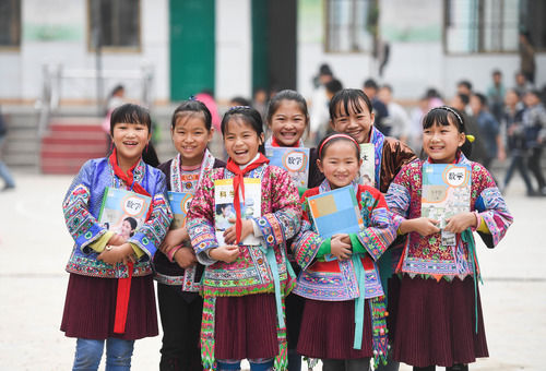这是广西融水苗族自治县白云乡中心校红瑶女童班的各族女童(2017年11月29日摄)。1988年,广西融水苗族自治县在白云乡创办了红瑶女童班,女童班实行寄宿制,并免交一切费用,有效提高了红瑶女童的入学率和巩固率。新华社记者 黄孝邦 摄