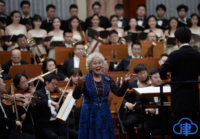 音乐会的最后,全体演员再次登台,与84岁高龄的著名女高音歌唱家于淑珍一同唱响歌曲《我的祖国》。于淑珍宝刀未老,她甜美的歌声依旧如往昔般惊艳众人,大家一次次报以热烈的掌声。