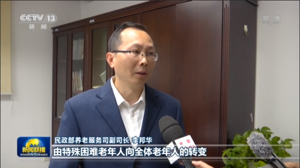 民政部养老服务司副司长 李邦华:“十三五”期间养老事业深入贯彻落实习近平总书记关于积极应对人口老龄化的科学论断,养老服务发展实现了服务对象由特殊困难老年人向全体老年人的转变,发展格局由政府举办向政府主导、全社会积极参与的转变,为新时期养老服务的发展奠定了坚实的基础。(总台央视记者 项飞 白央 玉梅 维华 山西台 陕西台 青岛台 吉安台 )