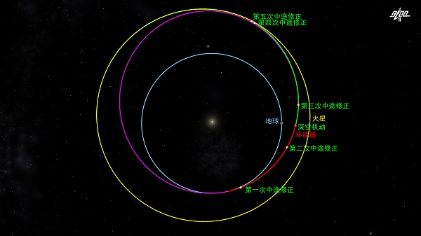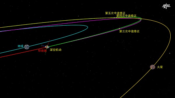 实施第三次轨道中途修正,是为了在深空机动后,对转移轨道再次进行微量调整,使火星探测器按照预定时间与火星交会。