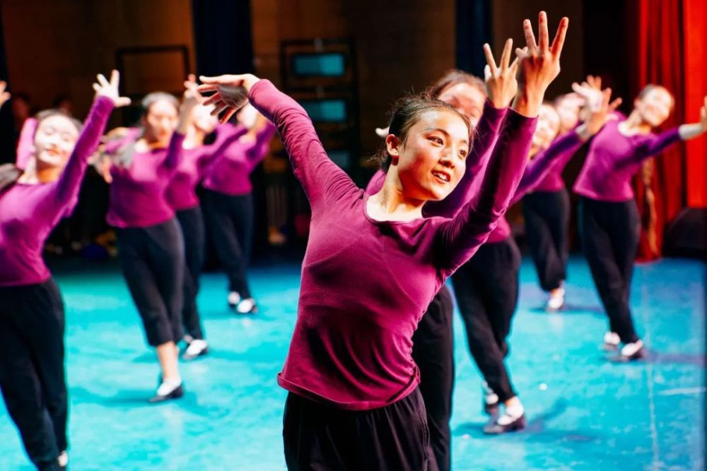 2019年7月5日,在位于西宁的青海省文化艺术职业学校,热梦科巴艺术团女队员在期末考试时表演舞蹈。新华社记者 刘金海 摄
