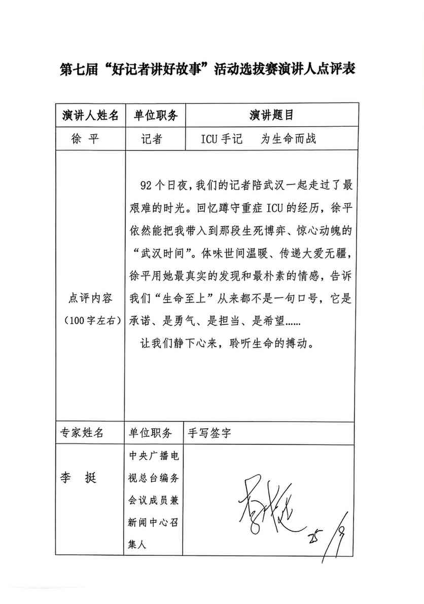抗击疫情,不辱使命。从1月28日奔赴武汉,到4月28日返回北京,在前线奋战整整92天,50多次进入红区,完成了数十场大小屏直播、新媒体产品、《新闻联播》指定任务。绝大多数时间都是蹲守在重症ICU,用镜头记录下疫情漩涡中的苦难、抗疫一线抢救生命的惊心动魄、国家危难之时的守望相助、勇敢者的逆行和一座城市的坚守。其中《重症ICU纪实》9集、100分钟的报道,在大小屏同步播出,取得了良好的收视、传播和社会效果,很多内容都冲上当天新闻话题热搜,公众讨论热度持续不减;总台独家持续跟踪报道《“云守护”小石榴》化作温暖人心的一抹阳光,在疫情报道中独树一帜,从一个新闻故事到一个记录平台,万千网友在线守护武汉新生命,话题热搜阅读量达到3.3亿。