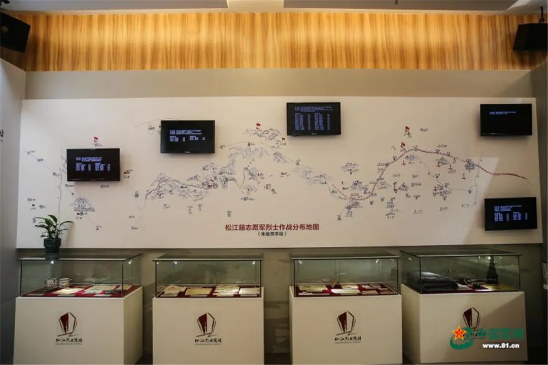 上海市松江区烈士陵园中展出的抗美援朝战争手绘地图。中国军网记者 伍行健摄