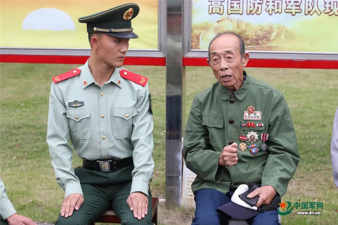 朱俊贤在和官兵分析抗美援朝经历。中国军网记者 伍行健摄