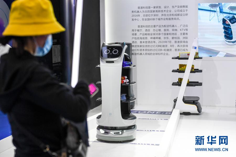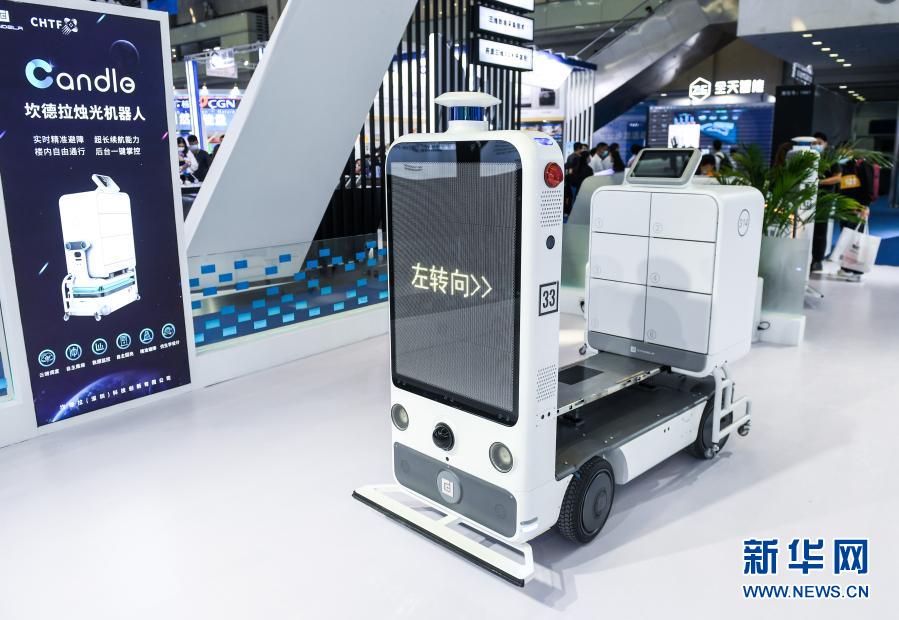 这是11月11日在高交会现场拍摄的配送机器人。新华社记者 毛思倩 摄