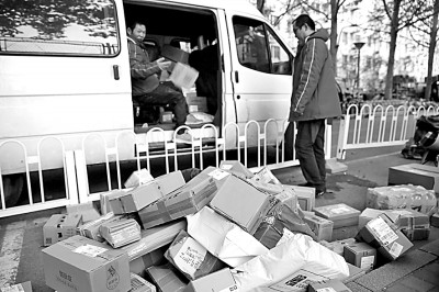 在北京市海淀区知春路一处快递分发点,快递小哥正熟练地分拣快递物品。随着“双11”强势来袭,电商集中促销让购物消费进入旺季。早上六点到晚上十点左右,成为快递小哥一天中最忙碌的时刻。光明日报记者 郭俊锋摄/光明图片