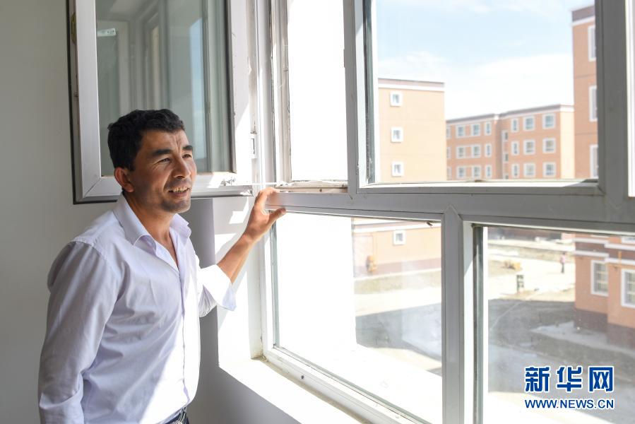 新疆叶城县棋盘乡居民来到叶城县易地扶贫搬迁物流园区安置点查看新房(2019年8月19日摄)。新华社记者 丁磊 摄