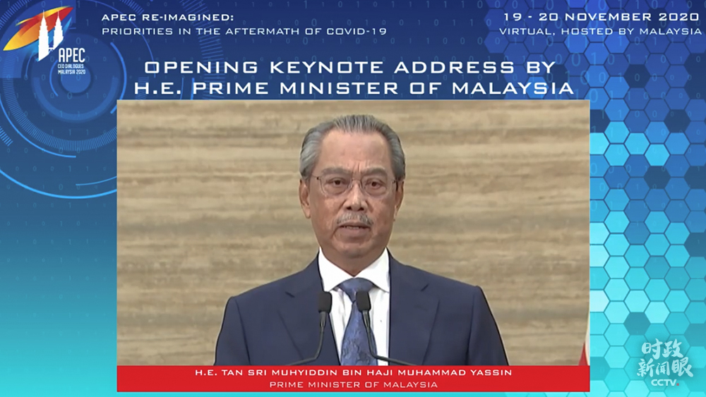 △马来西亚总理穆希丁当天在APEC工商领导人对话会开幕式上致辞。(来源于APEC官网)