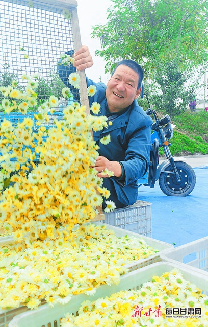 虎关乡吴坪村马得华家里试种的两亩多杭白菊卖上了好价钱。