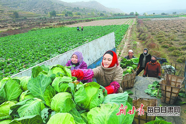 康丰乡杨台村高原夏菜种植基地里务工的村民,用自己的双手开启了致富门。