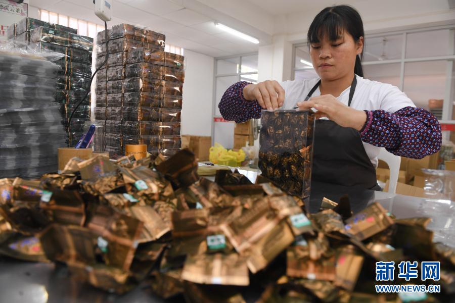 10月27日,在福建省安溪县感德镇槐川村的庆芸茶叶专业合作社,工人在包装铁观音茶叶。新华社记者 宋为伟 摄