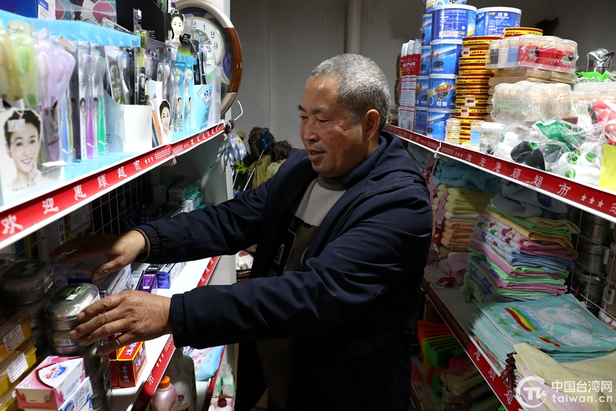 村民安景绪在店内整理货物。(中国台湾网 尹赛楠 摄)
