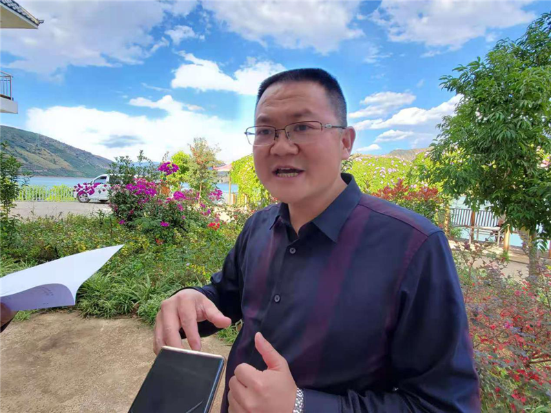华坪县石龙坝镇党委书记陈古周介绍有关情况。(中国网记者严星/摄)