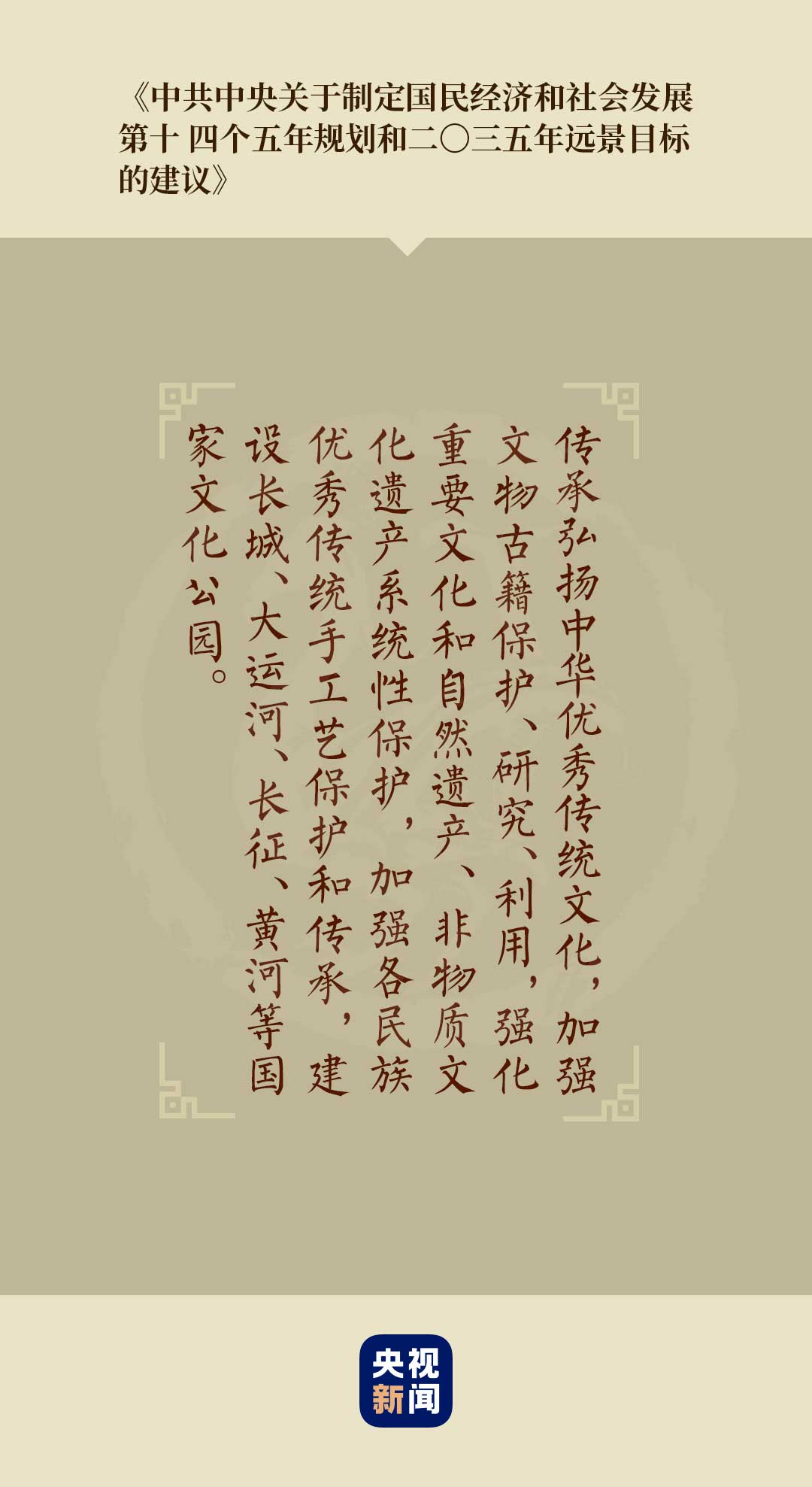 党的十九届五中全会审议通过的《中共中央关于制定国民经济和社会发展第十四个五年规划和二〇三五年远景目标的建议》,提出“繁荣发展文化事业和文化产业,提高国家文化软实力”的目标任务。