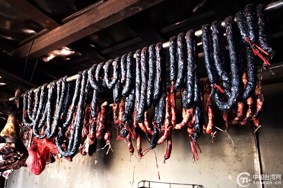 吉地尔子家的厨房里,挂满了晒好的腊肉和香肠。(中国台湾网 尹赛楠 摄)