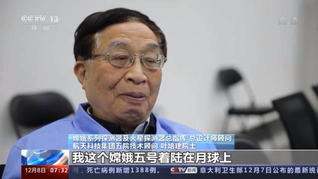 嫦娥系列探测器及火星探测器总指挥总设计师顾问 叶培建院士:整整十年,一个月不多,一个月不少。2011年1月立项,按照我们计划,12月份返回,正好十年,不容易,这个第一关过了。