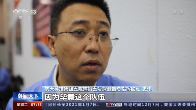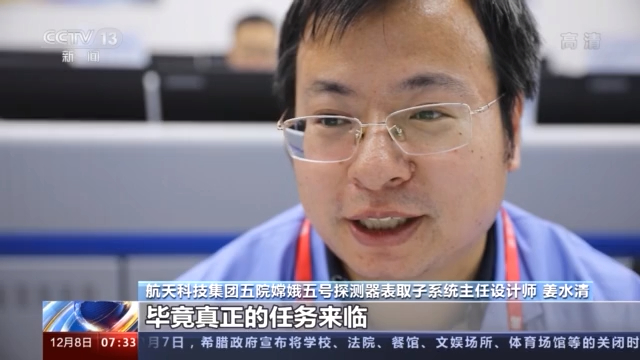 航天科技集团五院嫦娥五号探测器采样封装分系统主管设计师 姚猛:特别有感情,从当初二十几岁小伙子,到现在变成了孩子眼中的叔叔了。不过还是很兴奋,因为这是我们国家首次在月球上采样返回的,这么一个重大的任务。我觉得作为一个年轻人能参与这么一个重大的任务,我觉得还是很骄傲、很自豪、也很幸运的。