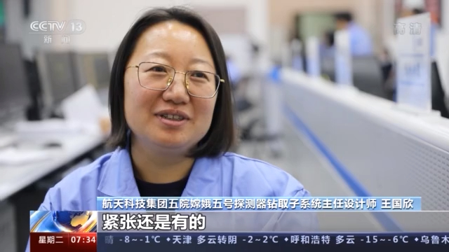 航天科技集团五院嫦娥五号探测器钻取子系统主任设计师 王国欣:说不紧张,其实是不想紧张。紧张还是有的,因为这个毕竟是我们这么多年的一个成果,今天是我们十几年以来的唯一的一次检验机会。我们之前按照我们在轨工作状态,提出了五十多种预案,今天只是用到其中一两个,其实用得还是比较少的。