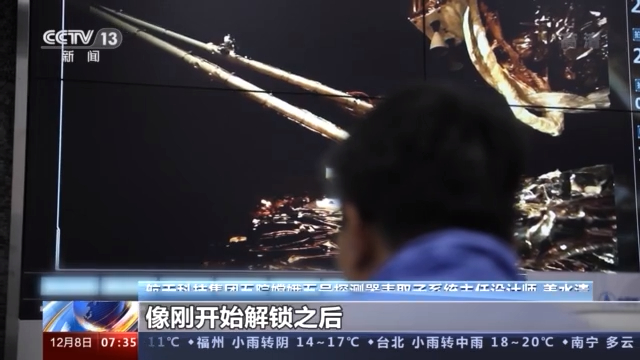 航天科技集团五院嫦娥五号探测器表取子系统主任设计师 姜水清:像解锁之后,第一次机械臂能不能动起来,这个实际上是一个比较关键的点。铲了一铲之后,我们信心还是比较强的,觉得今天这个任务还是能完成的比较不错。