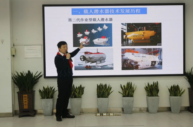 在启动仪式上,杨波通过《载人潜水器》主题讲座,向学生们讲述了我国载人潜水器的发展历程,分享了深海勇士在探索深潜的奋斗路上克服困难的种种经历。
