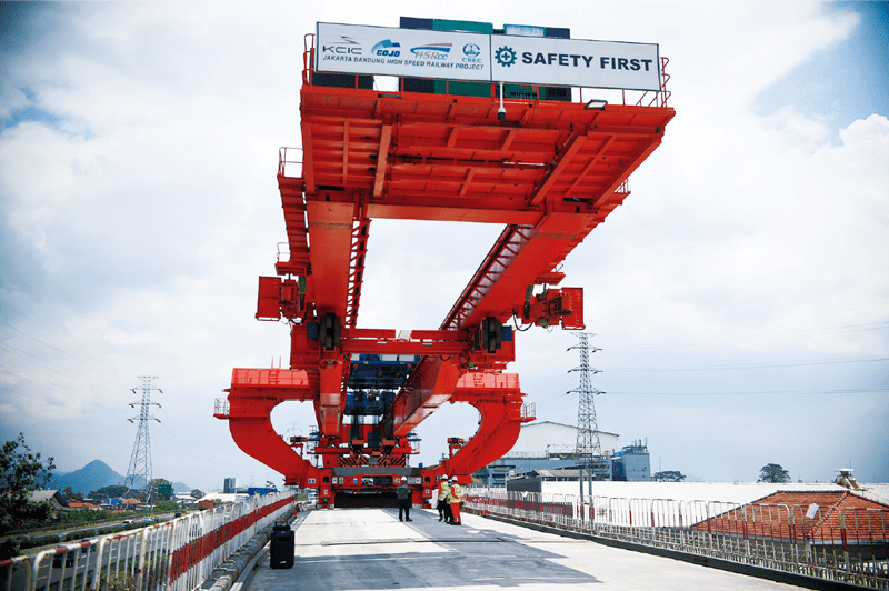 印度尼西亚雅万高铁项目是“一带一路”倡议的标志性工程和印尼国家战略项目。图为2020年9月3日,雅万高铁4号梁场进行架梁作业。新华社发 祖卡南/摄