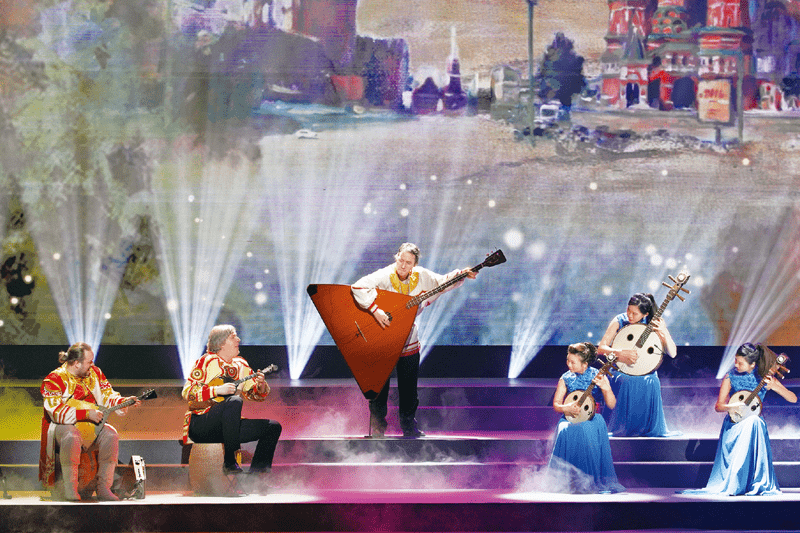 2019年5月15日至22日,亚洲文明对话大会在北京举行,大会举办了规模盛大的亚洲文化嘉年华和丰富多彩的亚洲文明周活动。图为5月18日,作为“亚洲文化展演”参演剧目,上海民族乐团演员与奥西波夫俄罗斯民族乐团演员共同演奏《相遇》。新华社记者 沈伯韩/摄