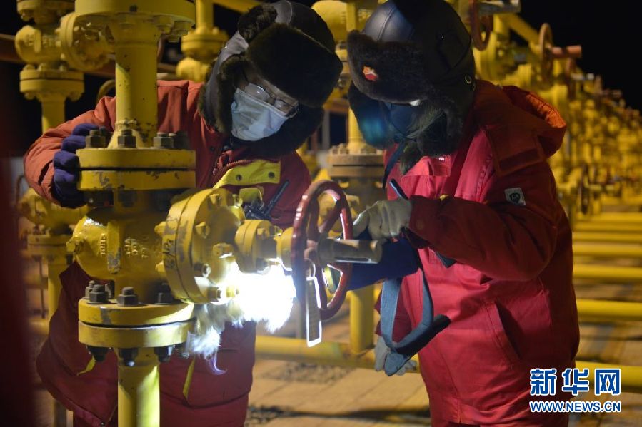 1月6日,采气一厂的工人在检查管道阀门。新华社记者 王浡 摄