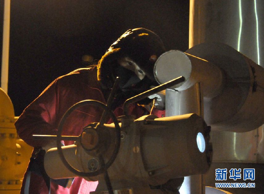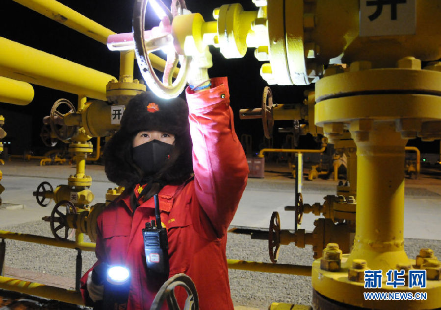 1月6日,采气一厂区域中心监测员刘立伟在检查管道阀门。新华社记者 王浡 摄