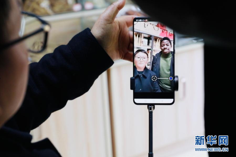 这是2020年12月18日,津巴布韦籍清华大学在读硕士生乌俊杰在直播带货。新华社记者 戴威摄
