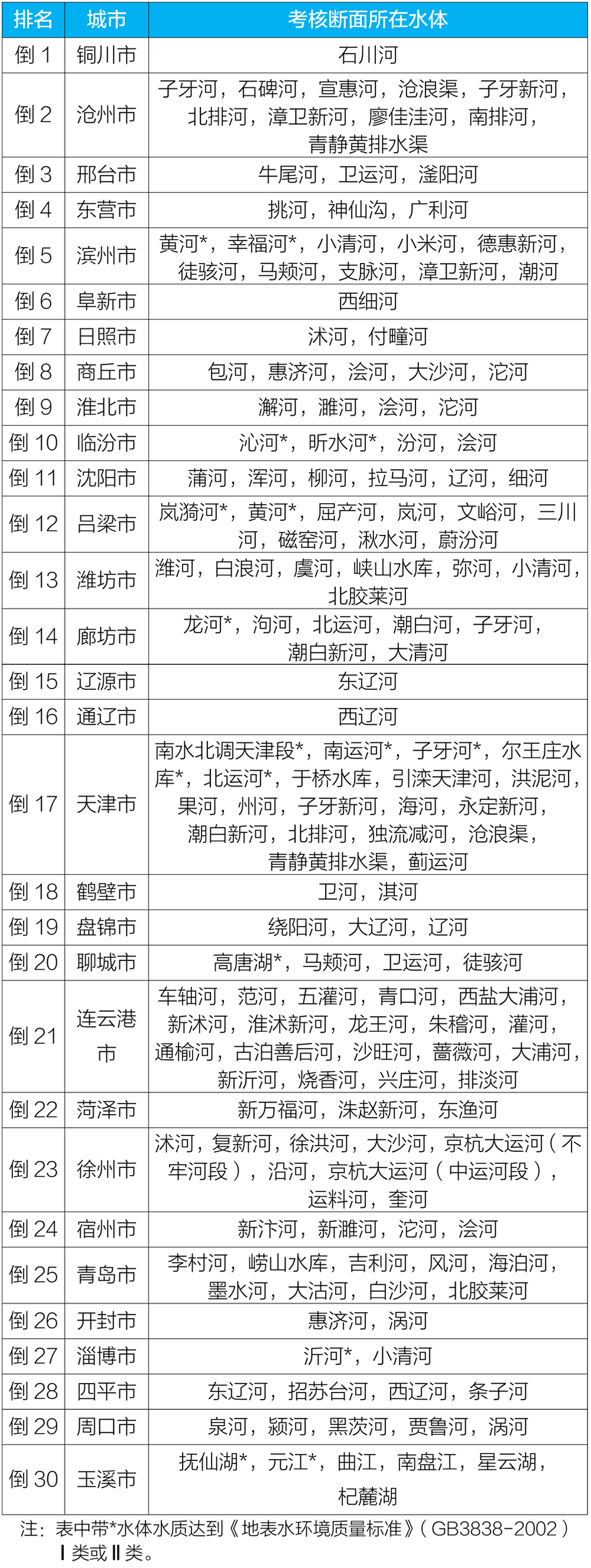 附表3:2020年1-12月国家地表水考核断面水环境质量状况排名前30位城市及所在水体