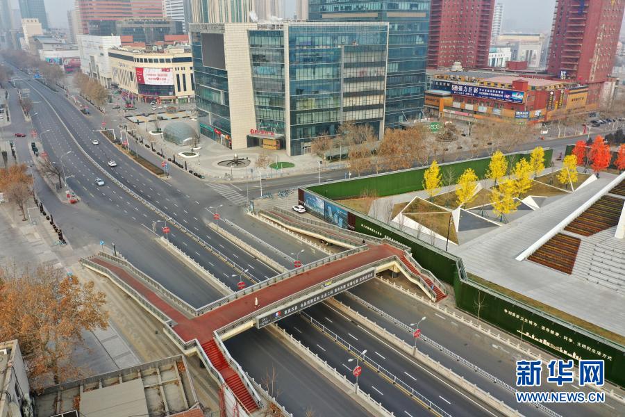 这是1月16日拍摄的石家庄中山西路(无人机照片)。