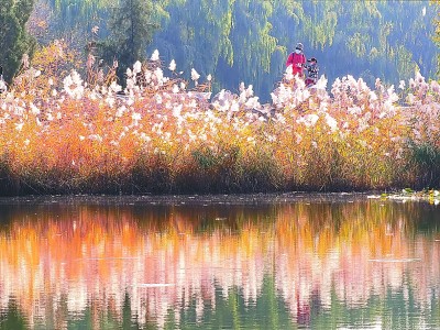游客在圆明园欣赏摇曳多姿的芦苇花。新华社发