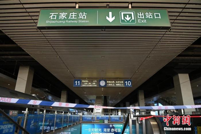 1月9日,石家庄火车站月台前往出站口的通道被封闭。中新社记者 侯宇 摄