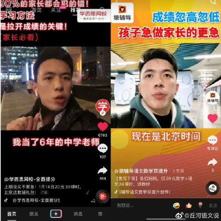 未来网记者还注意到,此次“撞脸”营销事件并非偶然,在线大班课品牌学而思网校和猿辅导的短视频广告也纷纷“中招”。在广告中,一名年轻男子,角色从“从业6年的中学老师”摇身一变成为了“为孩子着急的父亲”。