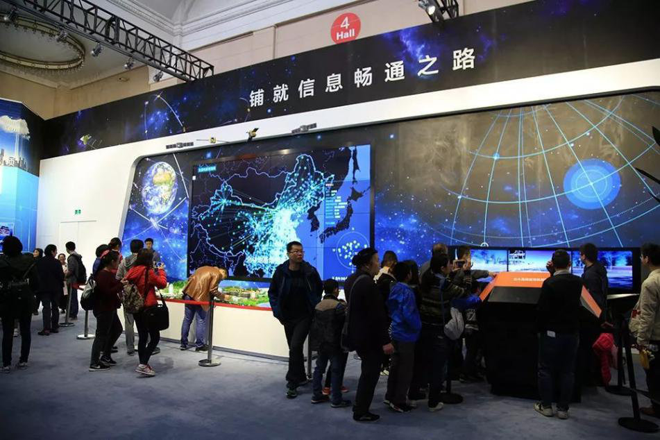 图为“砥砺奋进的五年”大型成就展上网络强国建设展区