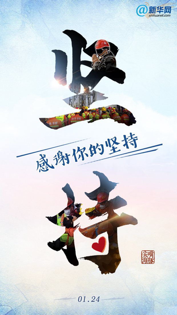 感谢你的坚持,感谢坚持带来的感动。眼下,还有工人被困井下,救援仍在紧张有序地进行。希望救援再接再厉,希望更多被困者平安归来,愿你们全力以赴、坚持到底!(文字:马若虎 海报:王晨曦)