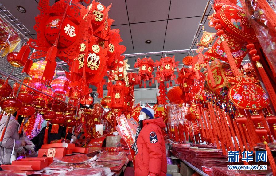 春节临近,北京市民纷纷采购灯笼、春联、年画等装饰品,准备红红火火过春节。