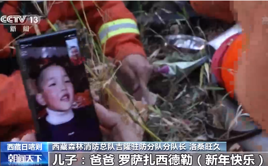 西藏森林消防总队吉隆驻防分队消防员 洛桑旺久:爸爸在吉隆工作呢。儿子新年快乐!看爸爸和叔叔们在这里过年呢。