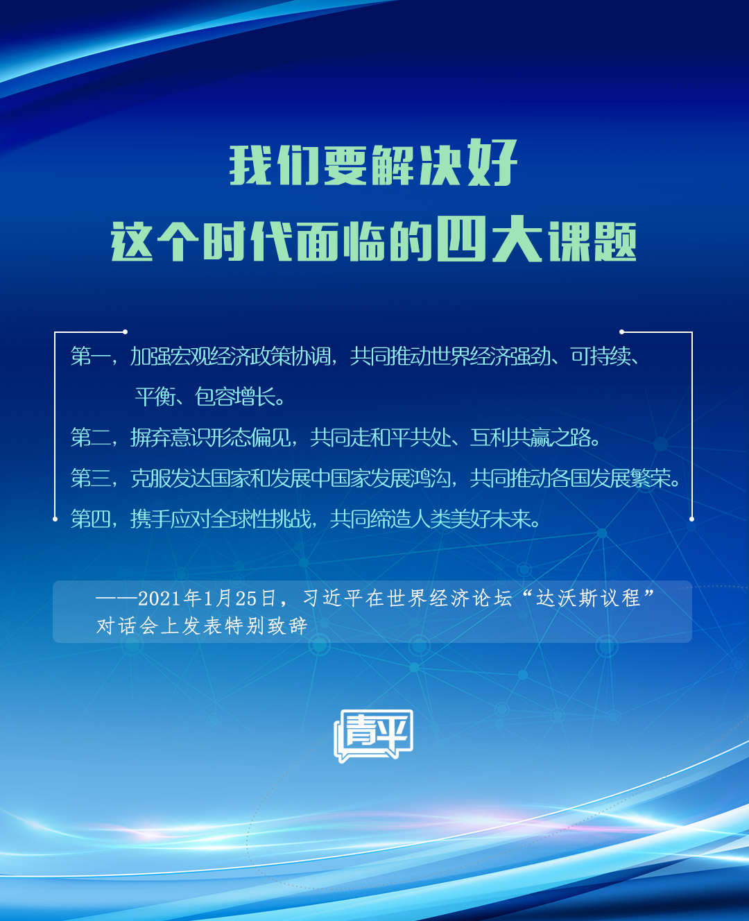 1月25日晚,国家主席习近平在北京以视频方式出席世界经济论坛“达沃斯议程”对话会并发表特别致辞。