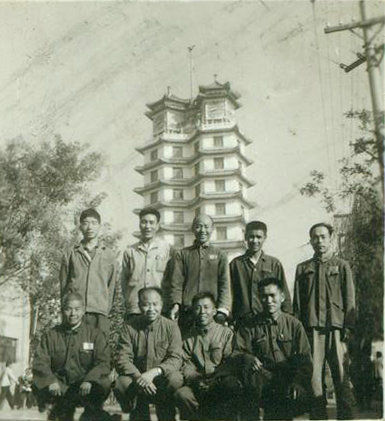 △ 翻拍的1971年部分建设者在二七纪念塔前的合照(郑州二七纪念馆供图)