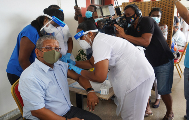 △塞舌尔总统拉姆卡拉旺接种中国生产的新冠肺炎疫苗■ 印尼