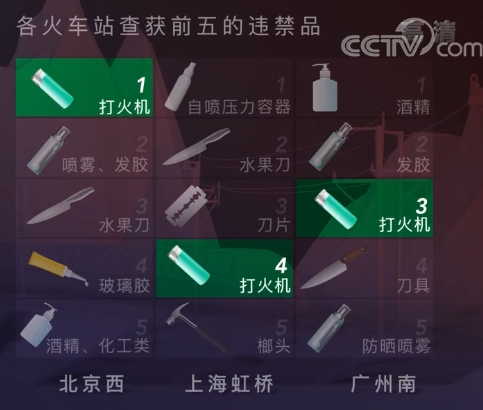 最后提醒旅客的是,不同的火车站和机场对违禁品的规定可能会有细微差别,旅客出发前可以进行详细查询,自己的随行物品也要仔细检查,以免给出行带来不便。