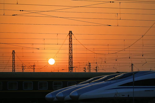 1月28日,中国铁路南昌局集团公司南昌客运段值乘的高铁列车整装待发。丁波摄
