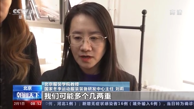北京服装学院教授 国家冬季运动服装装备研发中心主任 刘莉:服装剪裁的方式、服装结构的研发都是适合中国运动员体型特点的,包含着新型保暖材料的研发,还有减阻型面料的研发,全部具有咱们国家的自主知识产权。