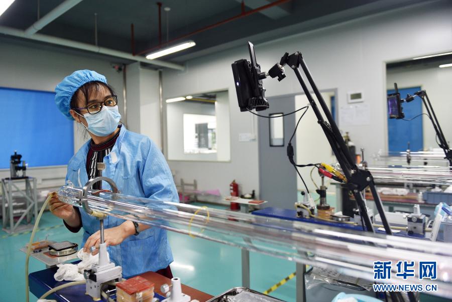 2020年4月13日,吉林省启动以“营造更好发展环境,支持民营企业改革发展”为主题的服务企业周。这是吉林省一家民营企业的工人在生产激光管。新华社记者 林宏 摄