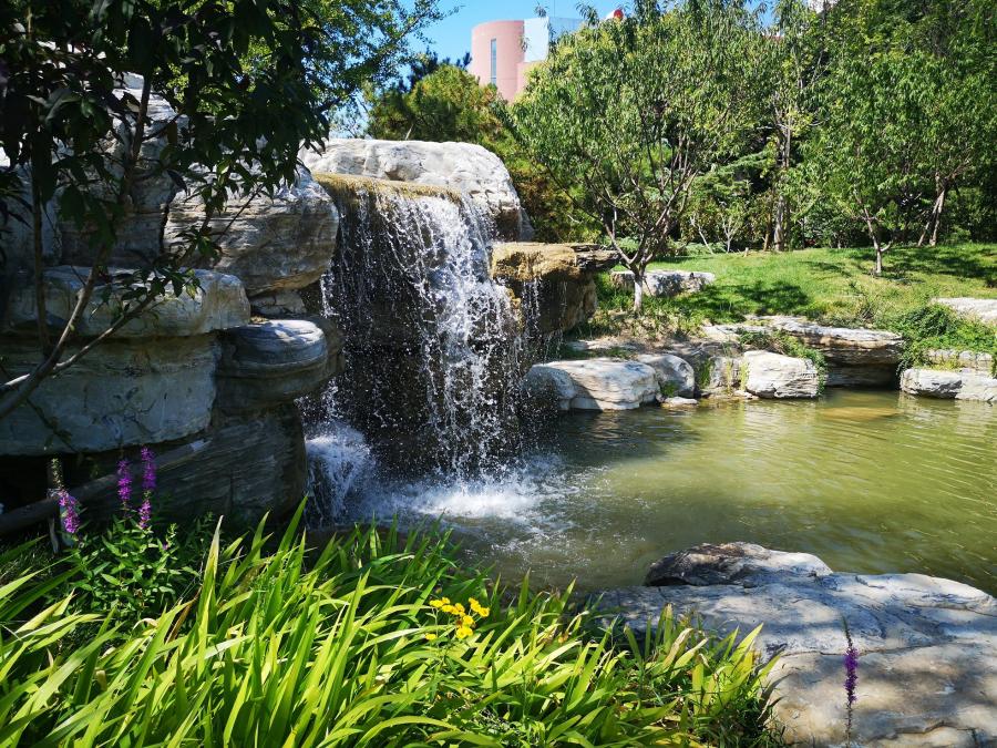 图为北辰中心花园小微湿地。(朝阳区融媒体中心供图)