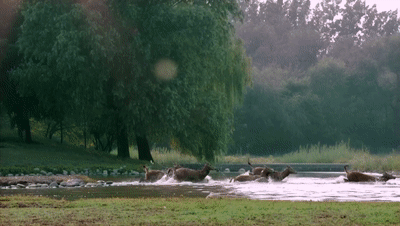 典型的湿地动物麋鹿成群结队、恣意撒欢