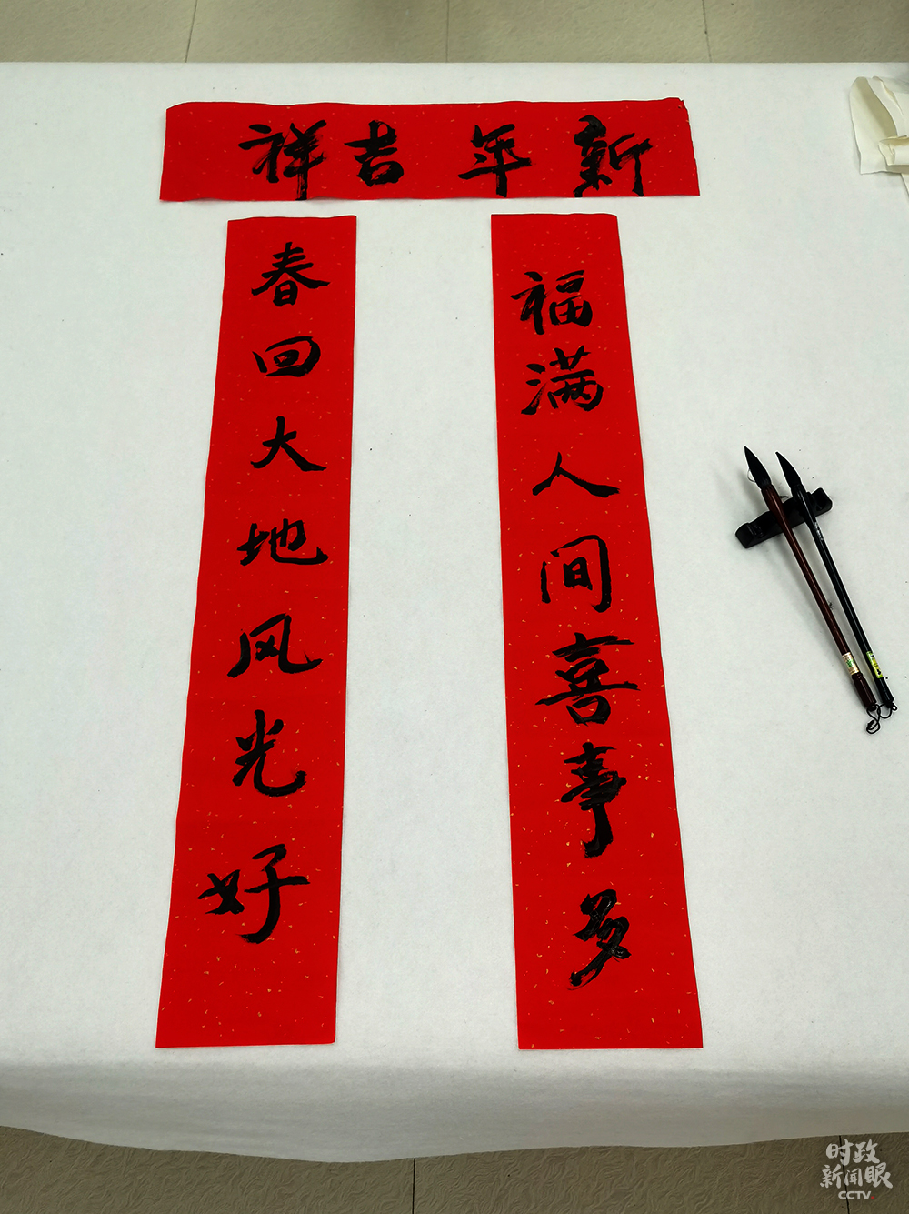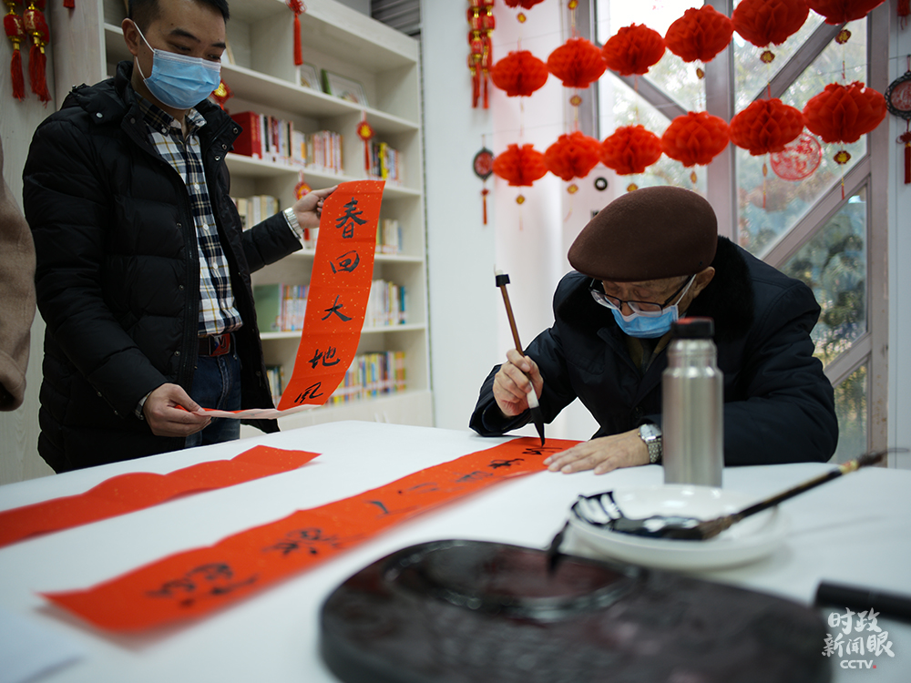 △84岁的社区居民戴世伦老先生,曾在贵州广播电视大学任教。这是他写的春联。(总台央视记者彭汉明、姚瑶拍摄)