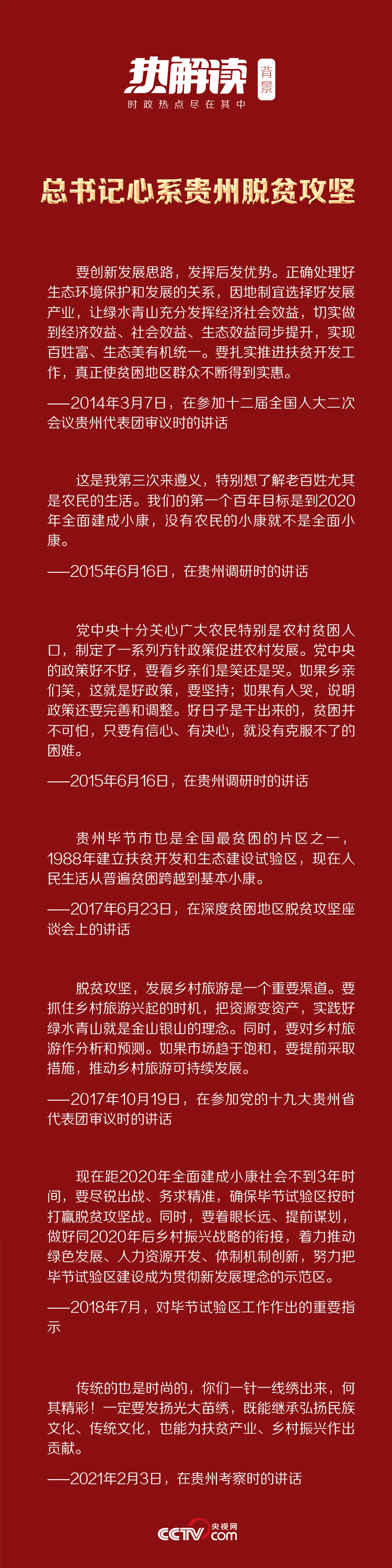 作为脱贫攻坚的主战场,贵州一直为总书记所牵挂。无论是考察调研,还是全国两会、党代会等重要场合,总书记都经常谈起贵州。