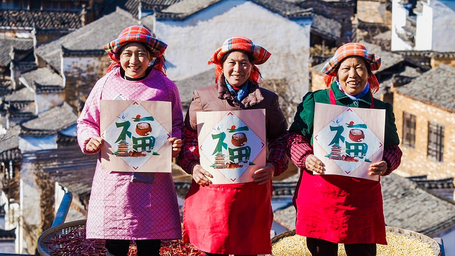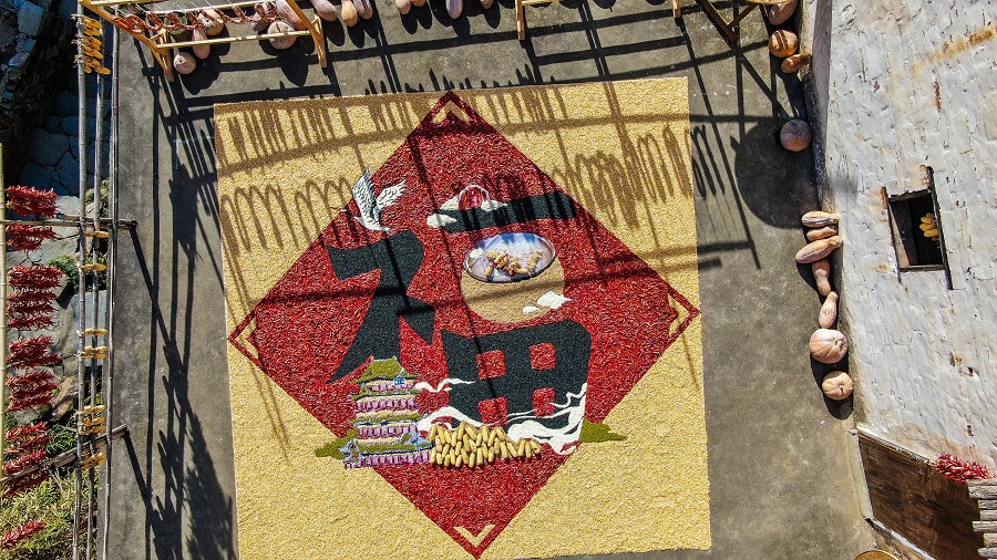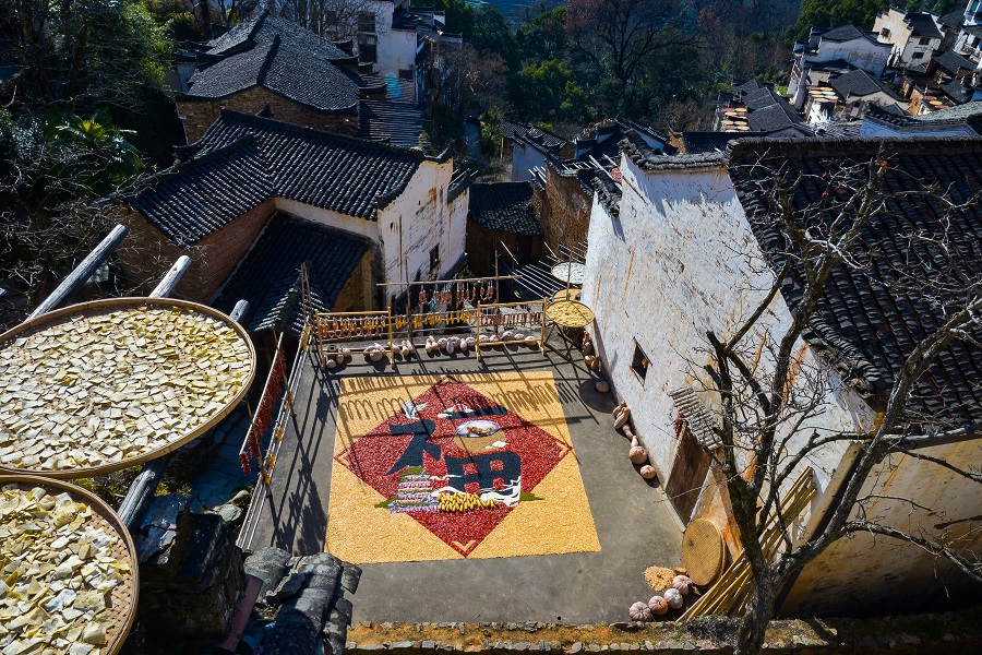 篁岭大妈创意晒秋 “福”字晒出浓浓年味
